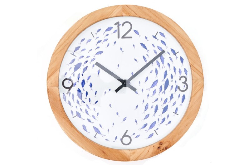 Wooden battery-powered quartz clock with enamel interior. Beautiful clock for the home, office or restaurant.