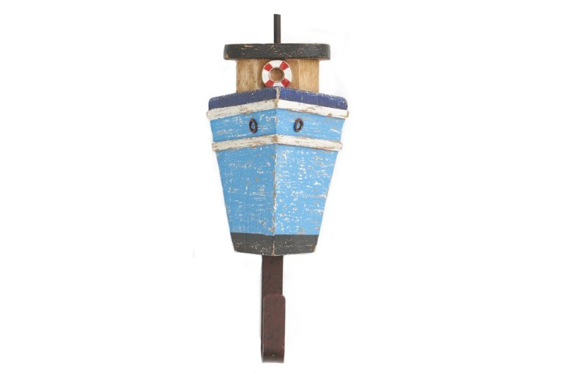 Colgador con proas de barcos de madera, y perchas de hierro fundido.