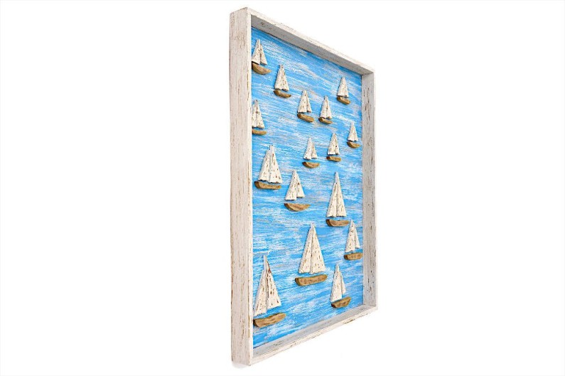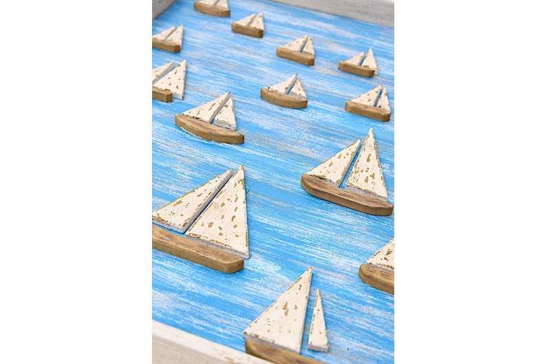 Cuadro marino decorativo en madera. En él se destaca un bonito barco marinero.