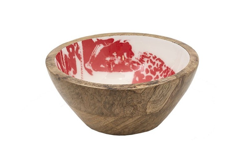 Bol fabricado en madera esmaltadas con langosta impresa.