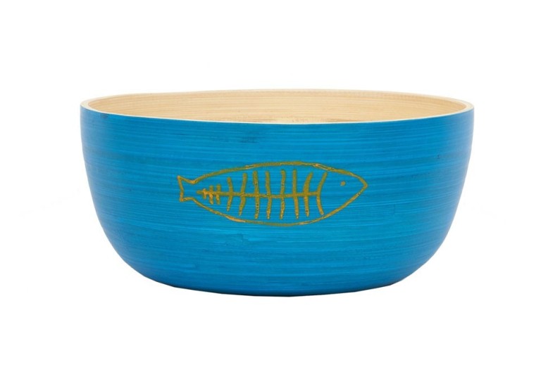 3 cuencos de madera de bambú, en distintos colores azules. Accesorios de sobremesa de bambú duraderos y ecológicos. Un producto de colores para cualquier ocasión en interior o exterior.