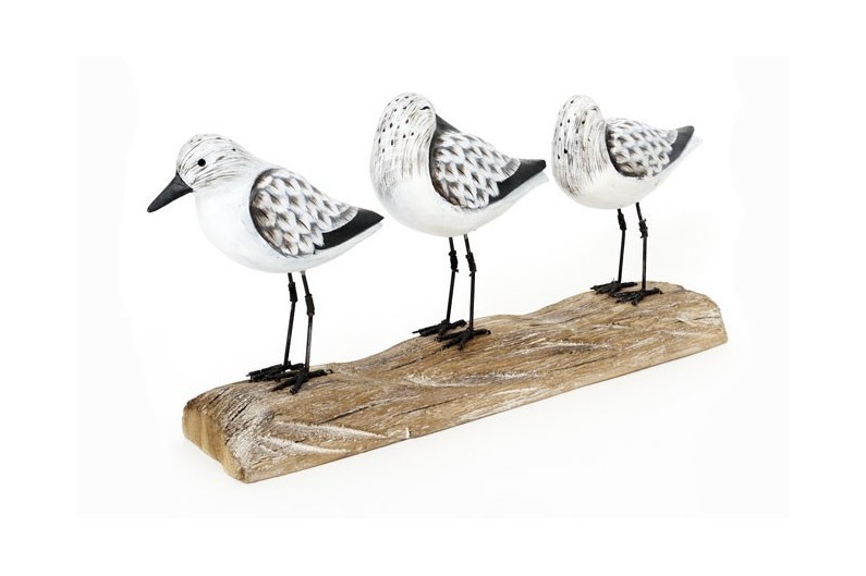 3 bonitos pájaros de madera fabricados artesanalmente, con base de sujección.
