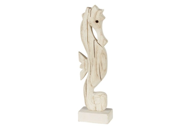 Figura tallada a mano en madera de un caballito de mar. El caballito de mar respresenta la la calma y la paz en un hogar.