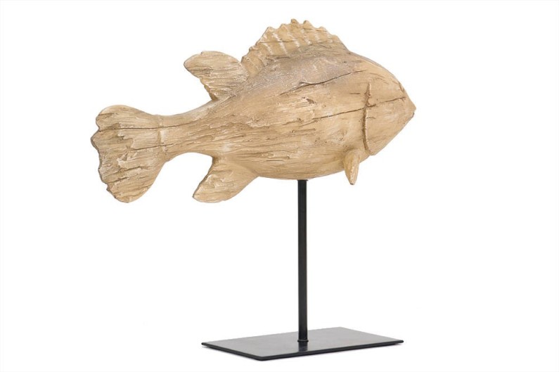 Figura de sobremesa de madera y acero, representando unos bonito pez.