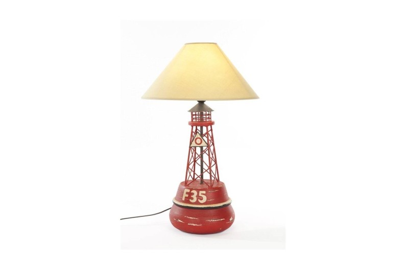 Lámpara baliza inspirada de las boyas de balizamiento marítimas flotantes. Lámpara náutica decorativa de madera, pintada y decorada a mano. Se entrega con la pantalla.