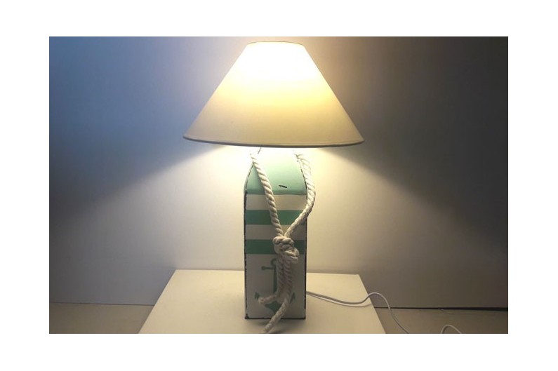 Lámpara con pie de baliza decorativa fabricada de madera de pino. Fabricada y pintada a mano.