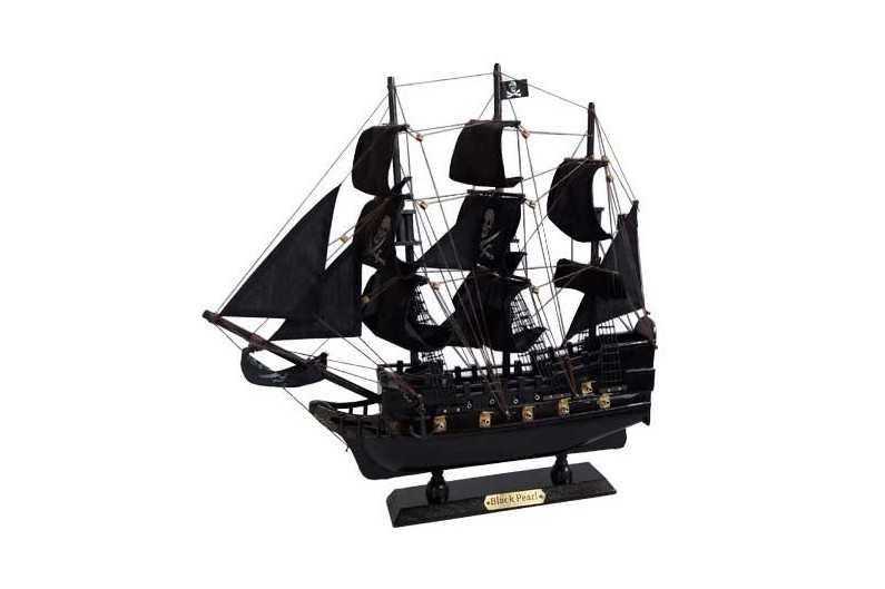 Maqueta del "Black Pearl" o "La perla negra", diseñado para las películas de Piratas del Caribe. Preciosa maqueta de decoración marinera fabricada en madera. Las velas negras están fabricadas en algodón.