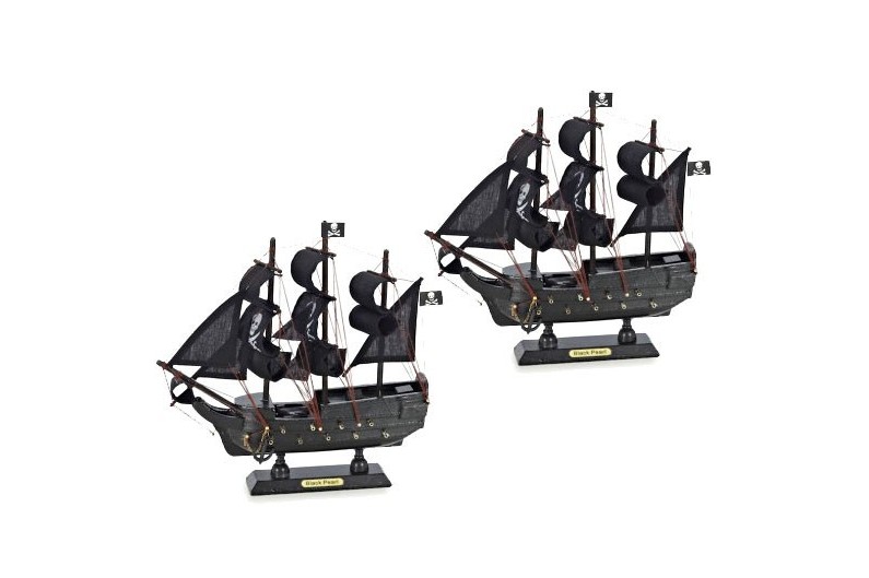 Conjunto de 2 maquetas del "Black Pearl" o "La perla negra", diseñado para las películas de Piratas del Caribe. Preciosa maqueta de decoración marinera fabricada en madera. Las velas negras están fabricadas en algodón.
