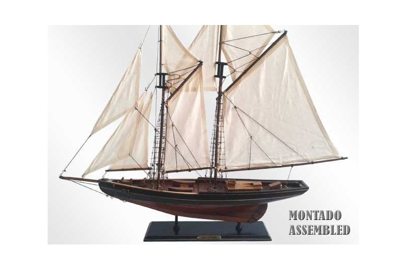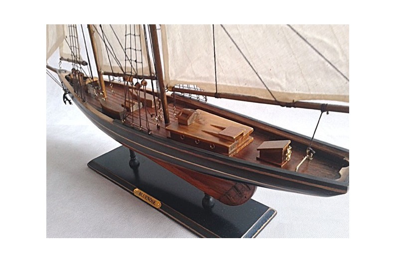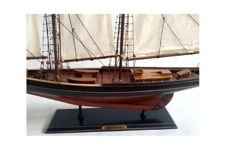 Reproducción del Bluenose (1921), diseñado para la pesca al bacalao, fue una goleta de regatas legendaria. Su nombre viene del mote dado a los nuevos Escoceses. La maqueta está fabricada y pintada a mano. El mástil viene desmontado para su tansporte.