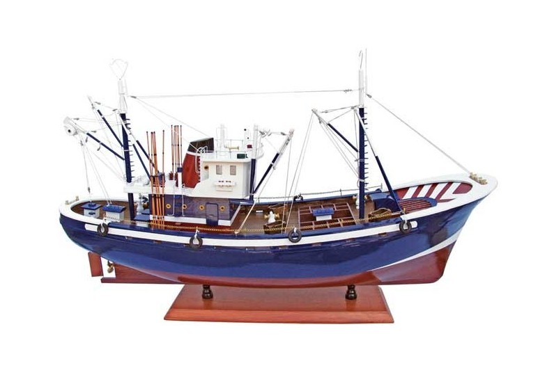 Preciosa maqueta TOTALMENTE MONTADA de un barco ATUNERO, que decora tanto su casa como oficina, y es un regalo inolvidable que perdura a través del tiempo. Construcción de alta calidad con materiales nobles, y con énfasis en los más pequeños detalles.