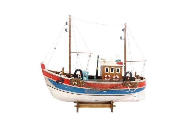 Preciosa maqueta TOTALMENTE MONTADA de un barco de pesca, que decora tanto su casa como oficina, y es un regalo inolvidable que perdura a través del tiempo. Construcción de alta calidad con materiales nobles, y con énfasis en los más pequeños detalles.