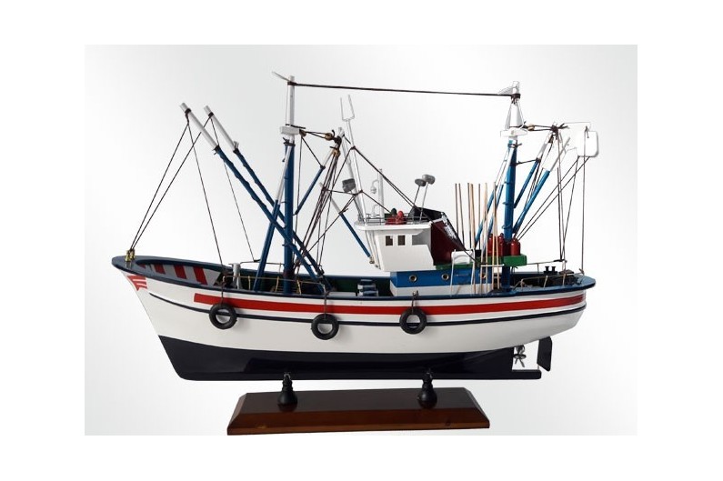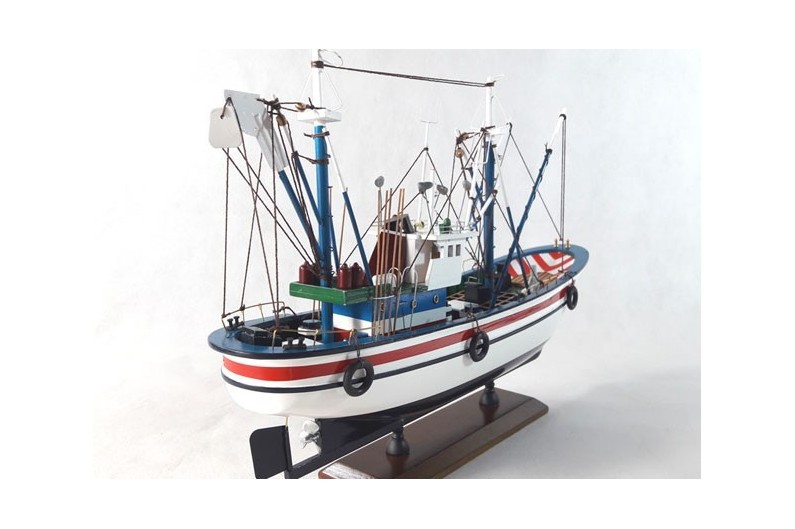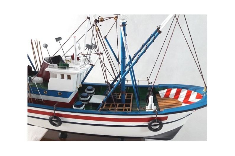 Barco de Pesca del Norte que se dedicaba a la pesca del atún. Su proa elevada que le protege de la mala mar es característico. Maqueta fabricada artesanalmente en madera.