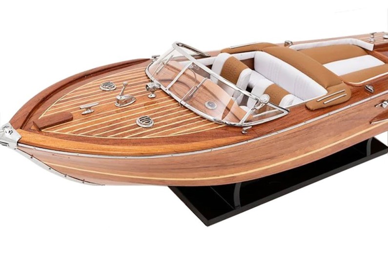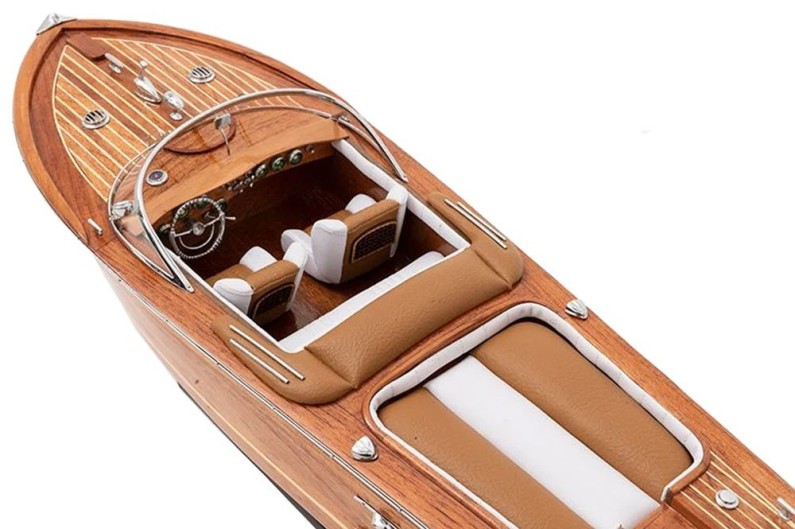 Preciosa maqueta TOTALMENTE MONTADA de una lancha de decoración Rv Aquarama que decora tanto su hogar como su depacho, y es un regalo inolvidable que dura a través del tiempo. Construcción de alta calidad con materiales nobles. Mida bién la estantería o lugar donde tiene pensado poner esta preciosa reproducción, ya que estas maquetas son más grandes de lo que parecen.