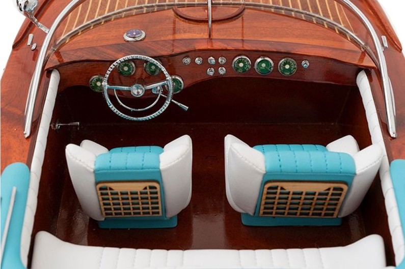Preciosa maqueta TOTALMENTE MONTADA de una lancha de decoración Rv Aquarama que decora tanto su hogar como su depacho, y es un regalo inolvidable que dura a través del tiempo. Construcción de alta calidad con materiales nobles. Mida bién la estantería o lugar donde tiene pensado poner esta preciosa reproducción, ya que estas maquetas son más grandes de lo que parecen.