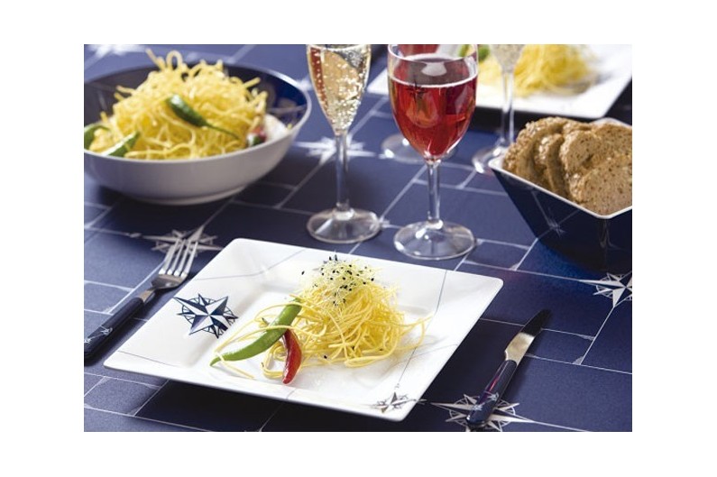 Set de 6 unidades de plato plano cuadrado, de precioso diseño, de color blanco y azul.