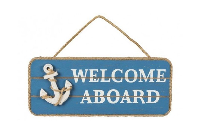 Placa marinera de decoración de "Welcome Aboard" de estilo rústico realizada en madera.