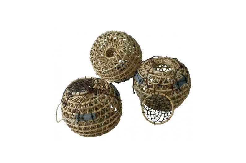 Preciosa nasa de pescadores hecha de mimbre trenzado, utilizada para la pesca de crustáceos. Precio por unidad.