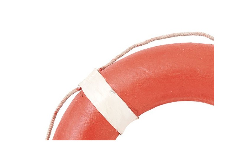 Réplica exacta de un salvavidas, ideal para dar un toque marino a la decoración. Realizado en porexpan en su interior y recubierto de una lona de algodón. La cuerda de algodón atada a su alrededor se utiliza para poder agarrarse.