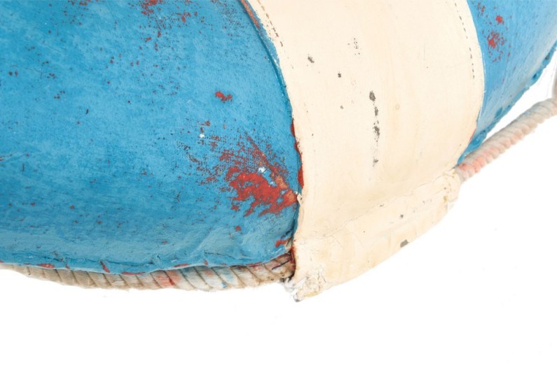 Réplica exacta de un salvavidas, ideal para dar un toque marino a la decoración. Realizado en porexpan en su interior y recubierto de una lona de algodón. La cuerda de algodón atada a su alrededor se utiliza para poder agarrarse.