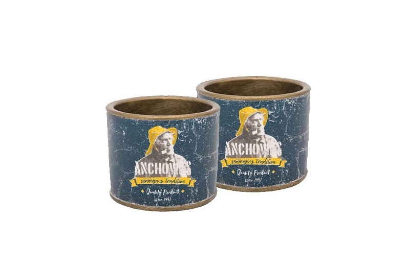 Lata de anchoas fabricada en cemento. Ideal para aperitivos.