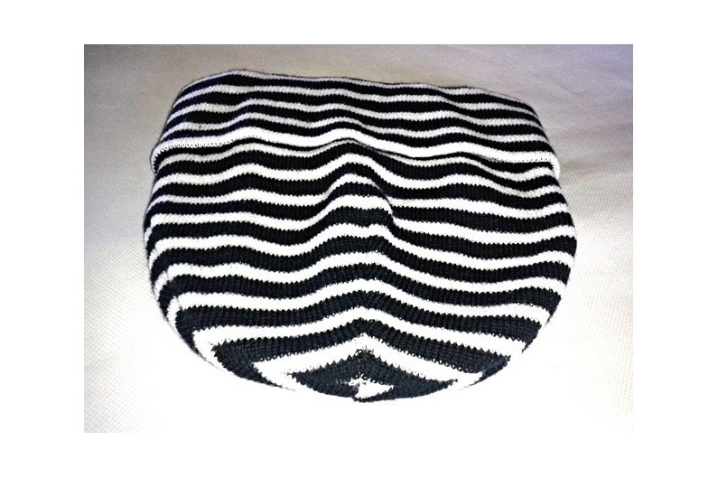 Chapeau tigré blanc et bleu style marin, très utile pour le froid en mer.