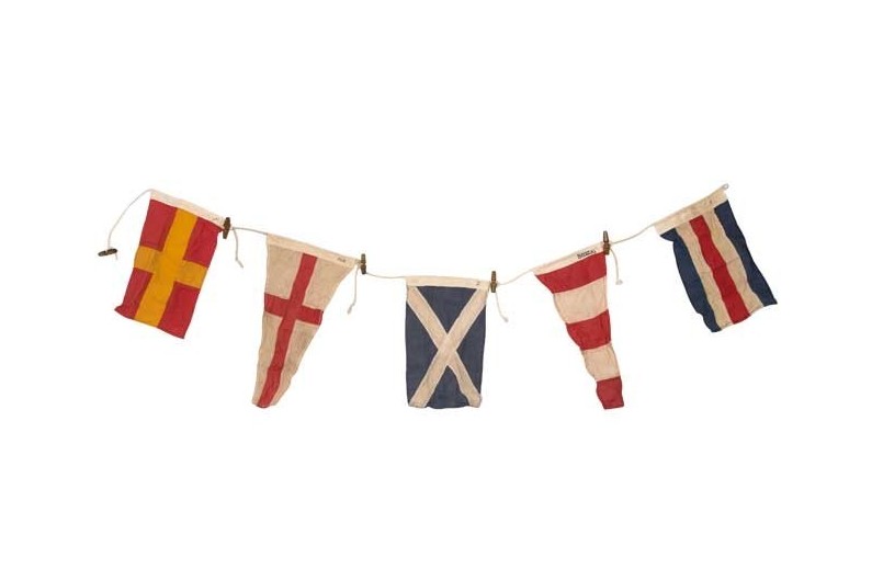 Guirlande de 5 drapeaux en coton, de approximatif 30cm de long chacun.