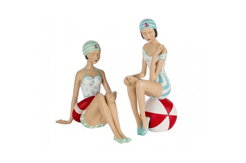 Belles figures de deux les baigneurs 40s. Fabriqué avec de la résine et peint à la main. Taille: a: 21 x 19,5 x 11,5 cm