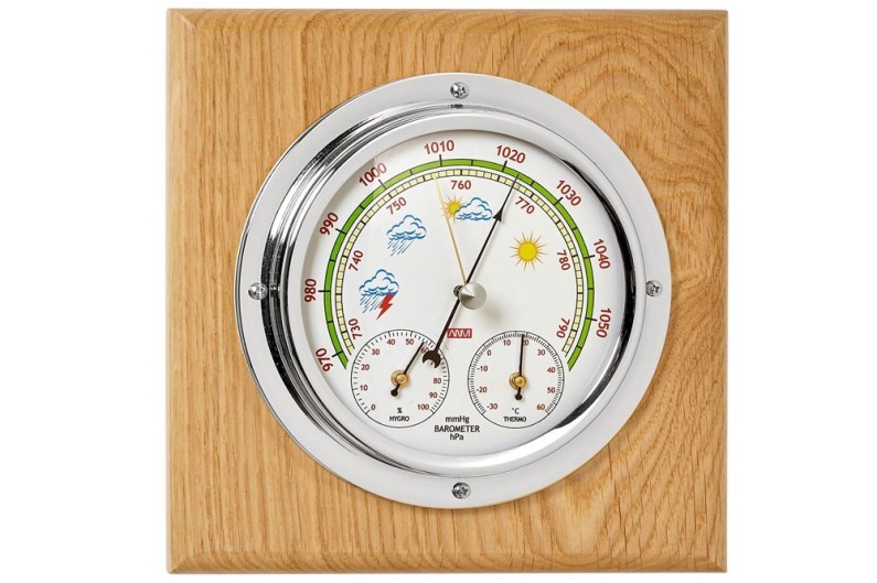 Station météo. Il dispose de Humidité, la pression atmosphérique et la température peut effectuer une prévision météorologique de base. Ils sont montés sur un tableau en Bois de chêne américain.