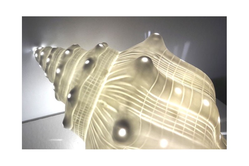 Lampe coquille en porcelaine translucide. Belle lampe marine qui diffuse une lumière tamisée, idéale pour ambiances intimes et relaxantes.