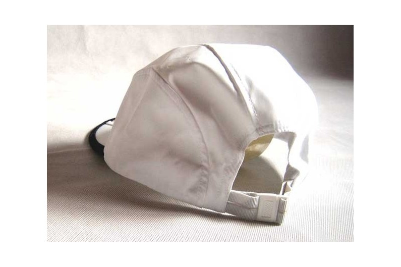 Marin chapeau blanc avec bleu brodé le logo de ancre. Conçu avec des évents pour assurer l'aération de la tête. Il dispose également d'un rack pour enlever la partie supérieure du capuchon et devenir visière. Arrière réglable..