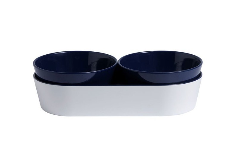 Set 2 unités bols pour les collations plus plateau de belle conception, couleur blanc et bleu.
