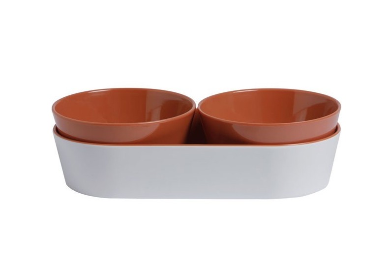 Set 2 unités bols pour les collations plus plateau de belle conception, couleur blanc et orange.
