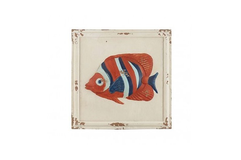 Tableau marine décorative fait de metal. Il se trouve un beau poisson.