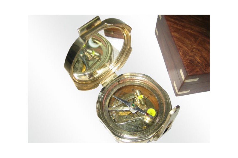 Bella replica della bussola di una nave Brunton, realizzata in ottone lucido. Include una scatola di legno rivestita all'interno, con iscrizione dell'ancora. Il diametro della bussola è di 8 cm. Funziona perfettamente anche se il suo uso deve essere puramente decorativo. Cronologia bussola navale