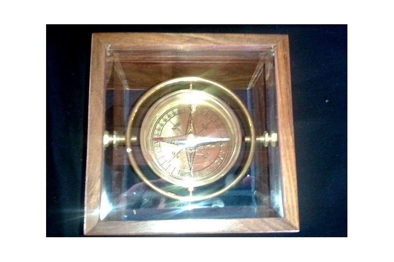 La parola "bussola" deriva dall'italiano "Bussola" (capseta). La bussola ha aperto il mondo dell'esplorazione e della scoperta. Già nel 3° secolo aC i cinesi usavano il principio dell'ago magnetico. Fu usato per la prima volta dai sacerdoti Feng Shui per indicare dove e come costruire. I marinai cinesi lo adattarono alla navigazione, intorno all'anno 1000, per mantenere la rotta. La prima bussola consisteva in un contenitore pieno d'acqua in cui galleggiava un ago magnetico sospeso a un filo o infilato in una canna. Gli arabi lo perfezionarono cavalcando un asse. È arrivato in Europa tra il X e l'XI secolo, consentendo ai navigatori di attraversare gli oceani e agli esploratori di scoprire i continenti. Il primo strumento che somiglia a quello che esiste oggi si deve al portoghese Ferrande (1483). Ispirato a una bussola del 19° secolo. Il quadrante è in ottone e la cassa è in palissandro.