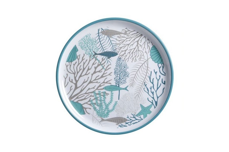 Set di 6 piatti piani, bel design, con sfondo mare.