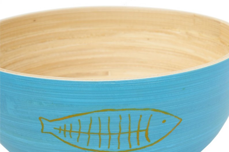 3 ciotole in legno di bambù, in diversi colori blu. Accessori da tavolo in bambù durevoli ed ecologici. Un prodotto colorato per ogni occasione al chiuso o all'aperto.