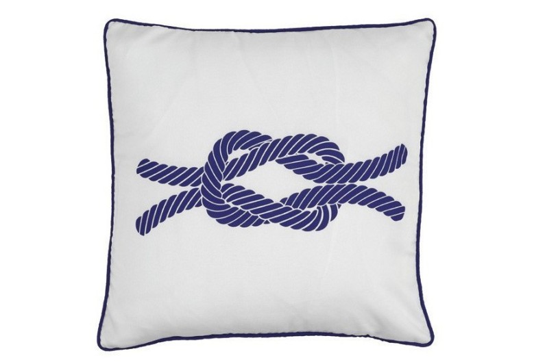 Set di 2 cuscini, alta qualità, fondo blu, con nodo ricamato. Sfoderabili. 100% poliestere.