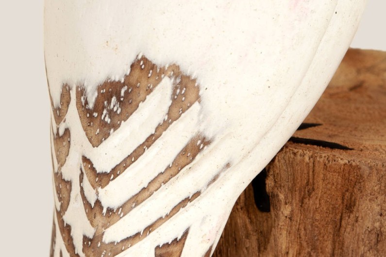 Uccello in legno di Albasia, della specie "gufo", con base in legno. Realizzato a mano in Indonesia, pezzo unico.