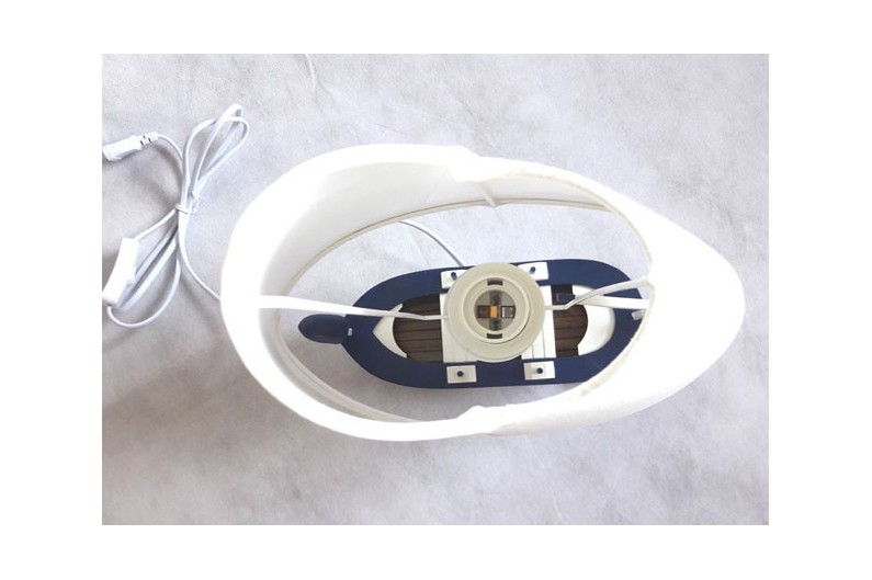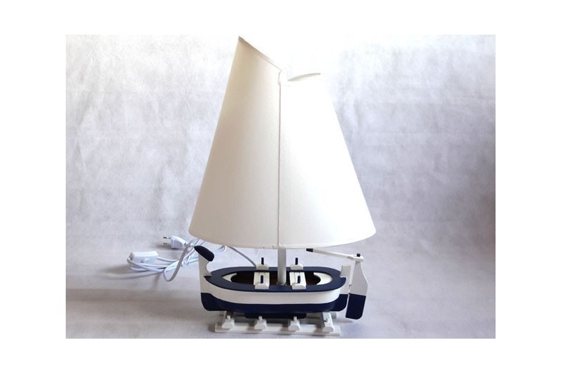 Luce della barca. Lampada nautica originale ricavata da uno scafo di barca da cui si alza la vela.Prodotta e dipinta a mano. Viene fornito con lo schermo.