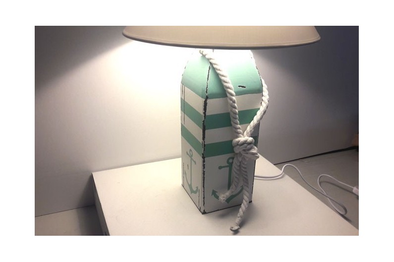 Lampada con base decorativa in legno di pino. Realizzata e dipinta a mano.