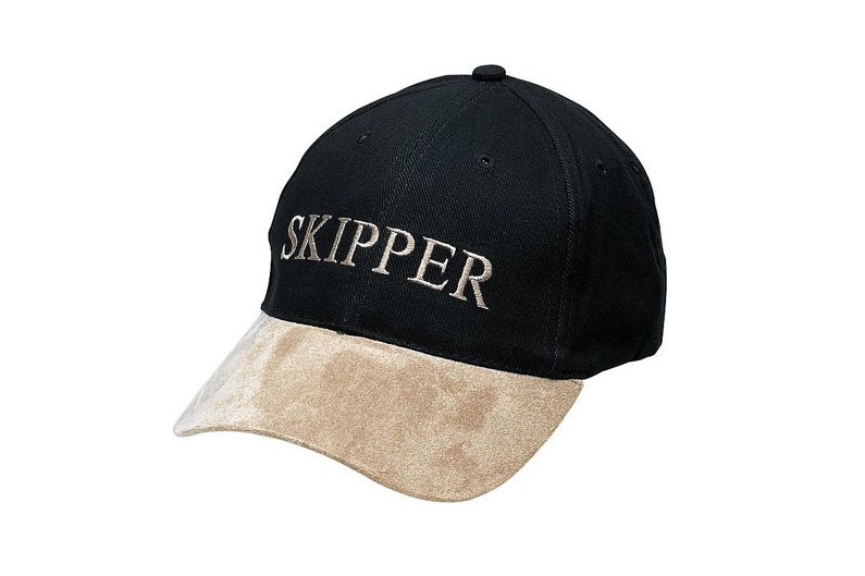 Cappello da marinaio nero, con logo SKIPPER ricamato. Progettato con aperture di ventilazione che garantiscono la ventilazione della testa. Regolabile sul retro.