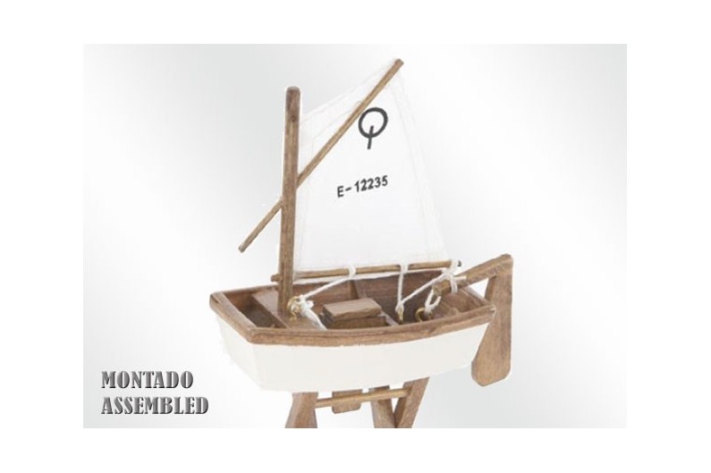 Bellissimo modello di decorazione nautica COMPLETAMENTE ASSEMBLATO di un Optimist, ideale da regalare come dettaglio che arreda sia la tua casa che il tuo ufficio. Non persegue la fedeltà nella sua riproduzione, ma il suo valore decorativo. Costruzione di alta qualità con materiali nobili e con enfasi sui minimi dettagli.