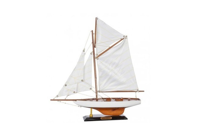 Bellissima riproduzione COMPLETAMENTE ASSEMBLATA dello yacht COLUMBIA della Copa America per decorare sia la tua casa che il tuo ufficio. Costruzione di alta qualità con materiali nobili e con enfasi sui minimi dettagli. Misura bene lo scaffale o il luogo in cui prevedi di posizionare questa bellissima riproduzione, poiché questi modelli sono più grandi di quanto sembrino.