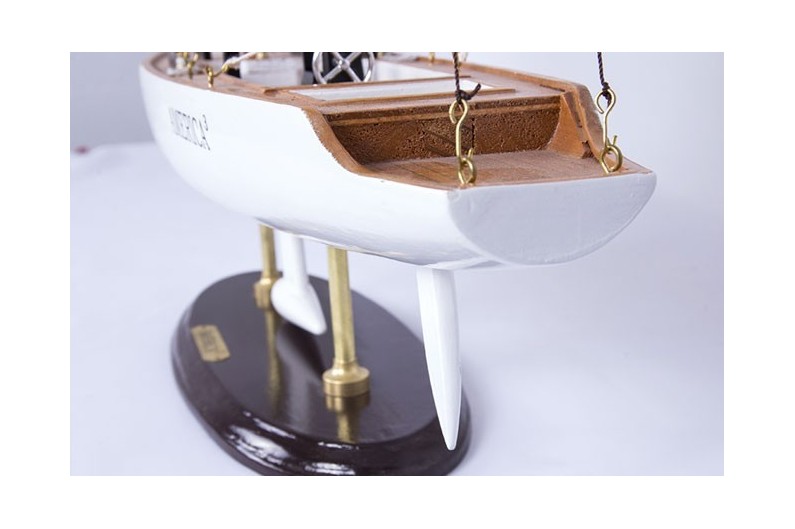 Bellissimo modello COMPLETAMENTE ASSEMBLATO della barca EL AMERICA dell'America's Cup, con molti dettagli e molto ben rifinito. Ideale per gli amanti della vela agonistica, come regalo o decorazione in ufficio. Guarda un trailer del film "La forza del vento" basato sulla Coppa America.