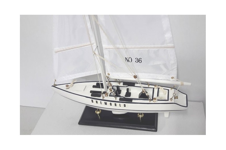 Riproduzione di una Barca a Vela da Regata, disponibile in due colori, bianco e blu/rosso. Si prega di misurare lo scaffale o il luogo in cui si intende mettere questa bellissima riproduzione, poiché questi modelli sono più grandi di quanto sembrano.