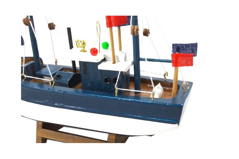 Bellissimo modello COMPLETAMENTE ASSEMBLATO di barca da pesca di mare, che arreda sia la casa che l'ufficio, ed è un regalo indimenticabile che dura nel tempo. Costruzione di alta qualità con materiali nobili e con enfasi sui minimi dettagli.