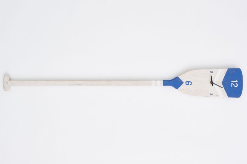 Orologio al quarzo su pala in legno realizzato e dipinto a mano. Decora la tua casa, ristorante o hotel con questo orologio di ispirazione nautica.