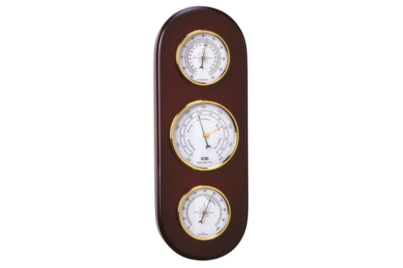 Stazione metereologica. Ha umidità, pressione atmosferica e temperatura, potendo fare previsioni meteo di base per tutti i navigatori. Sono montati su un telaio di legno.