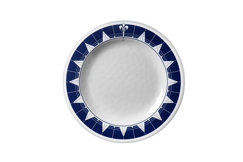 Set di 6 Piatti piani, bel design, bianco e blu.